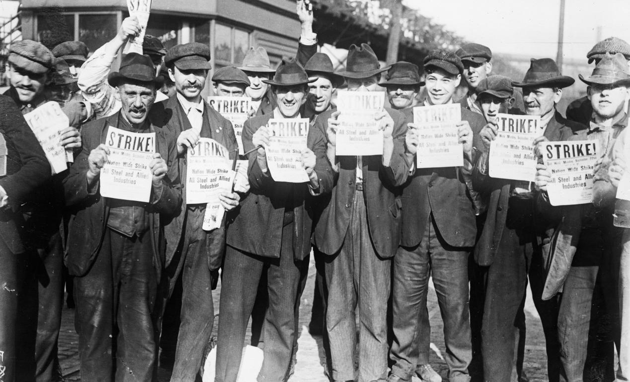 Workers from U.S. Steel company going on strike in 1919.