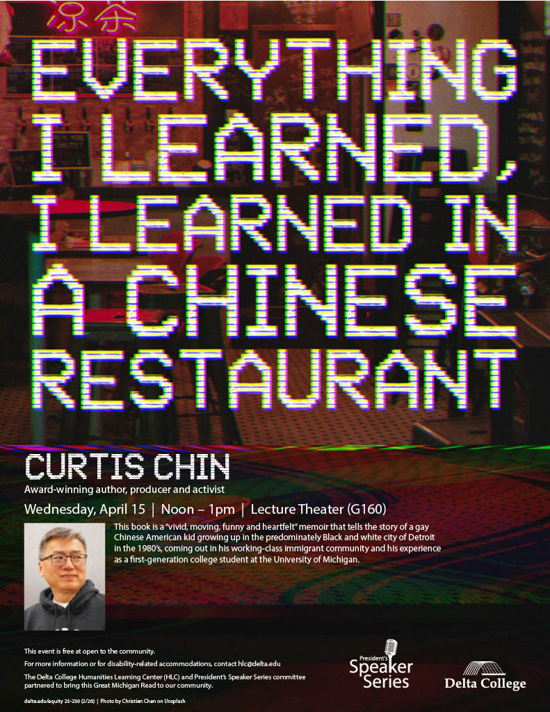 Award-wining author, producer and activist will talk about his book Everything I Learned, I Learned in a Chinese Restaurant, which was selected as this year’s Great Michigan Read. It is a memoir about growing up a gay Chinese kid in 1980s Detroit,